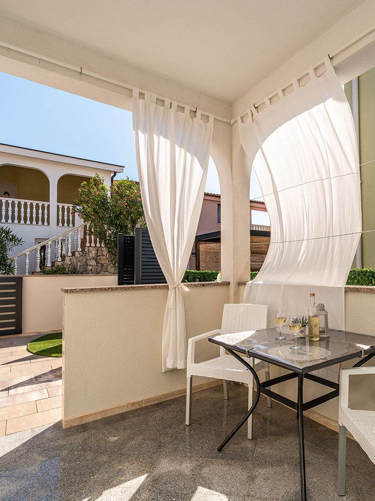 Apartman gostima nudi terasu, pogled na unutarnje dvorište, prostor za sjedenje, TV ravnog ekrana, potpuno opremljenu kuhinju s mikrovalnom pećnicom i hladnjakom te vlastitu kupaonicu s tušem. Sve jedinice imaju popločani dio dvorišta s vanjskom blagovaonicom i pogledom na tihu ulicu. U apartmanskom naselju jedinice su opremljene posteljinom i ručnicima.